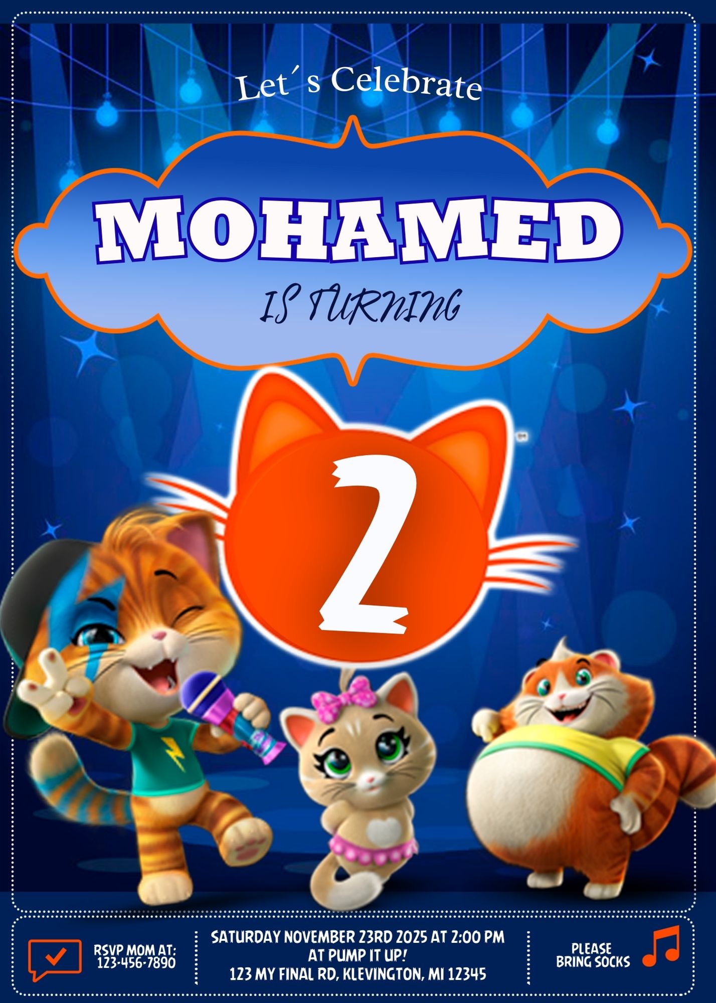 Delight your little kids with this 44 cats Birthday Invitation template, edit yourself at canva.