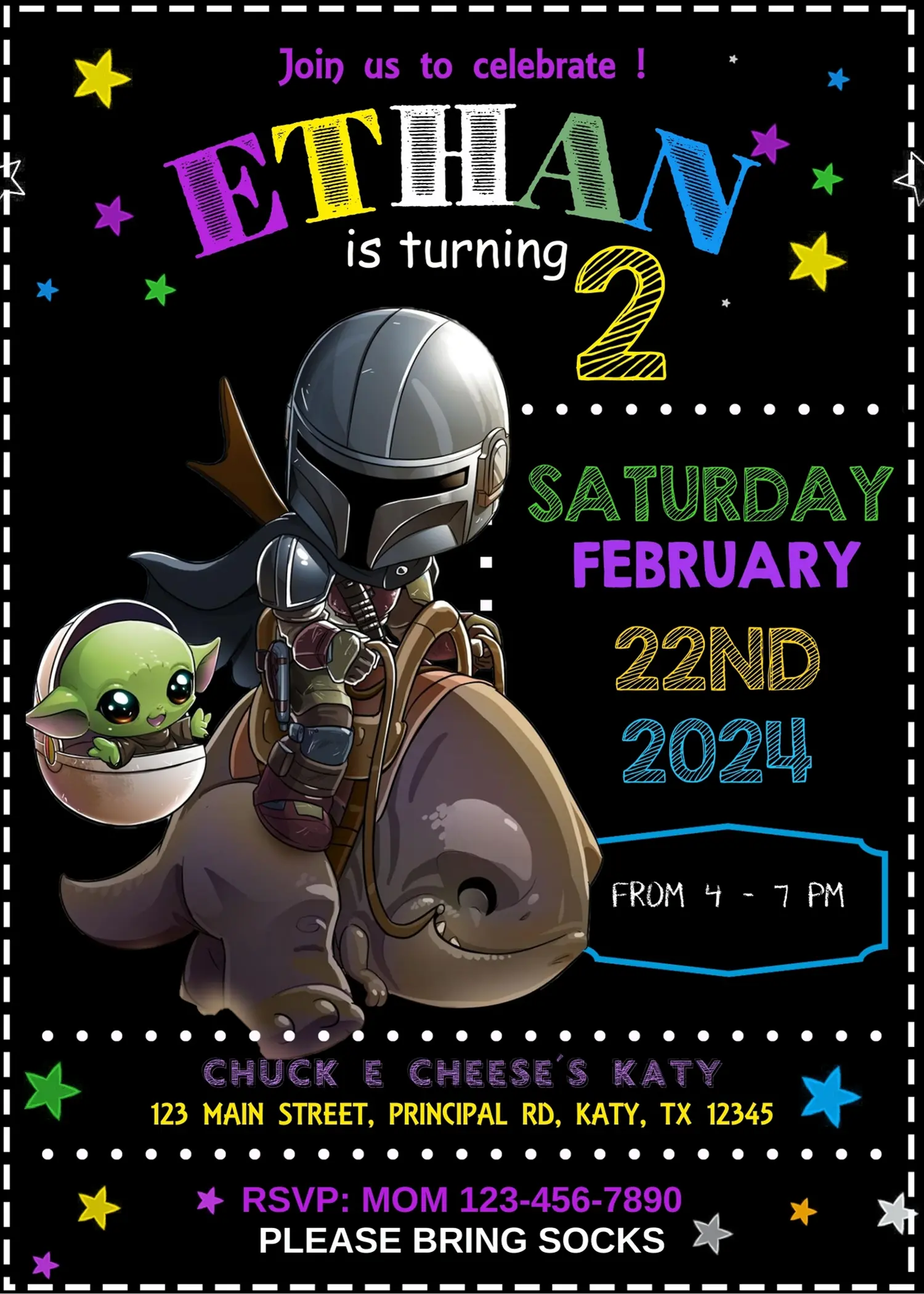 Our Baby Yoda Birthday ivitation template is a cool invite your guests will be excited to receive. Save money by editing and printing the digital files yourself! Edit then print or send them as an evite by emailing or texting your guests!