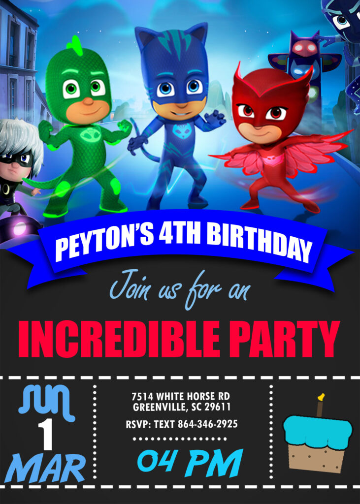 Delight your guests with this Fantastic Blue Catboy Pj Masks Birthday Invitation.
