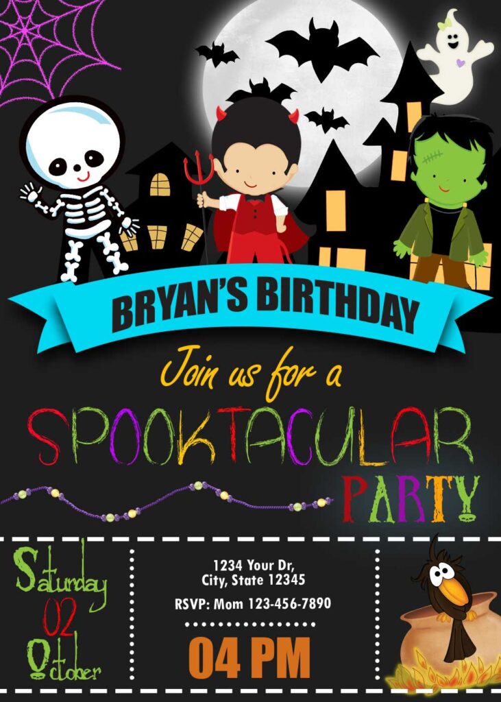 This Awesome Halloween Spooktacular Costume Birthday Party invitation is perfect for your little ones’ birthday party! Can print this printable on high quality card stock or glossy photographic paper; this invitation features colorful characters and a fun birthday party design. Your little ones will love celebrating their birthday with friends with this Halloween Spooktacular Costume Birthday Party invitation!