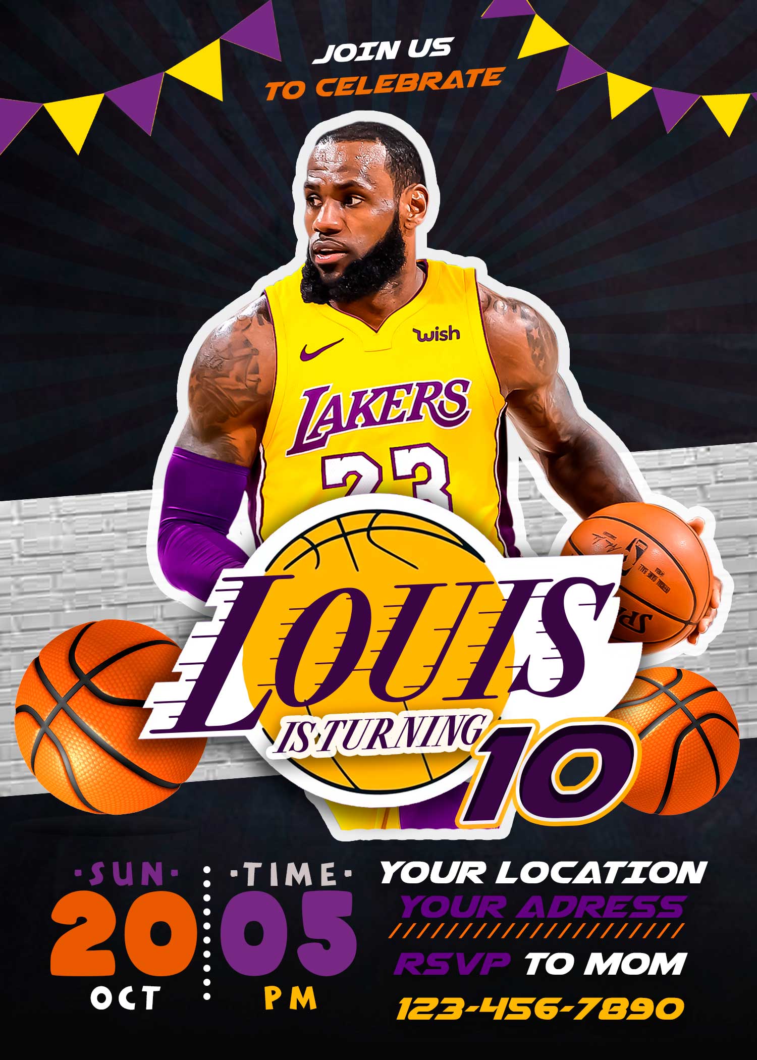 This Lakers Lebron James Birthday Invite – will be a hit for your little basket superstar!