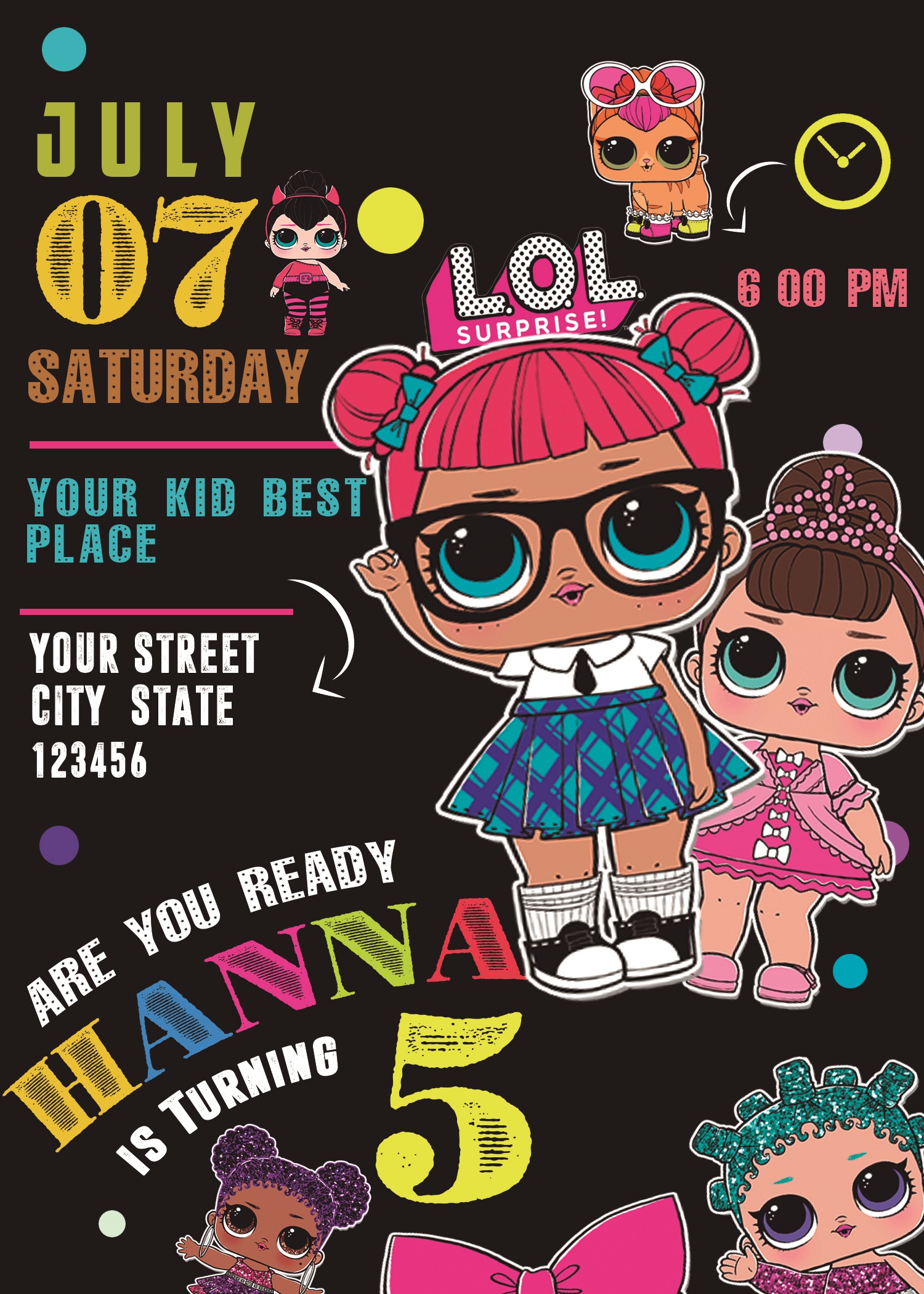 LoL Surprise Dolls are famous dolls in America and the world, this mini dolls are so cute and loved by girls.Using this invite would be a great idea to invite some friends to a Lol Dolls Surprise party.