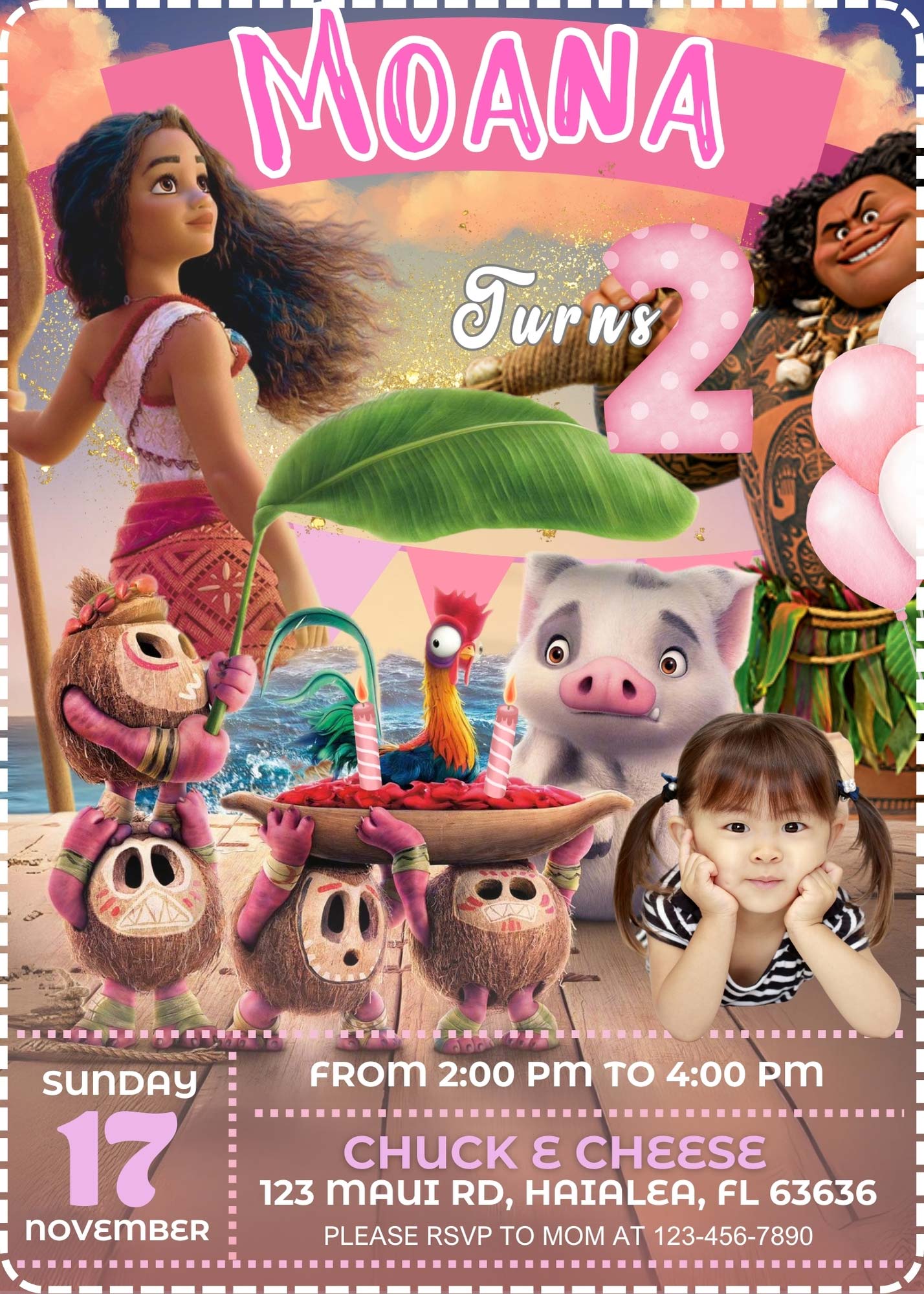 This is a digital, printable Moana 2 Birthday Invitation for girl. the invitation will be personalized by a professional designer after your purchase, using the info that you wrote at the buyers note when checking out.