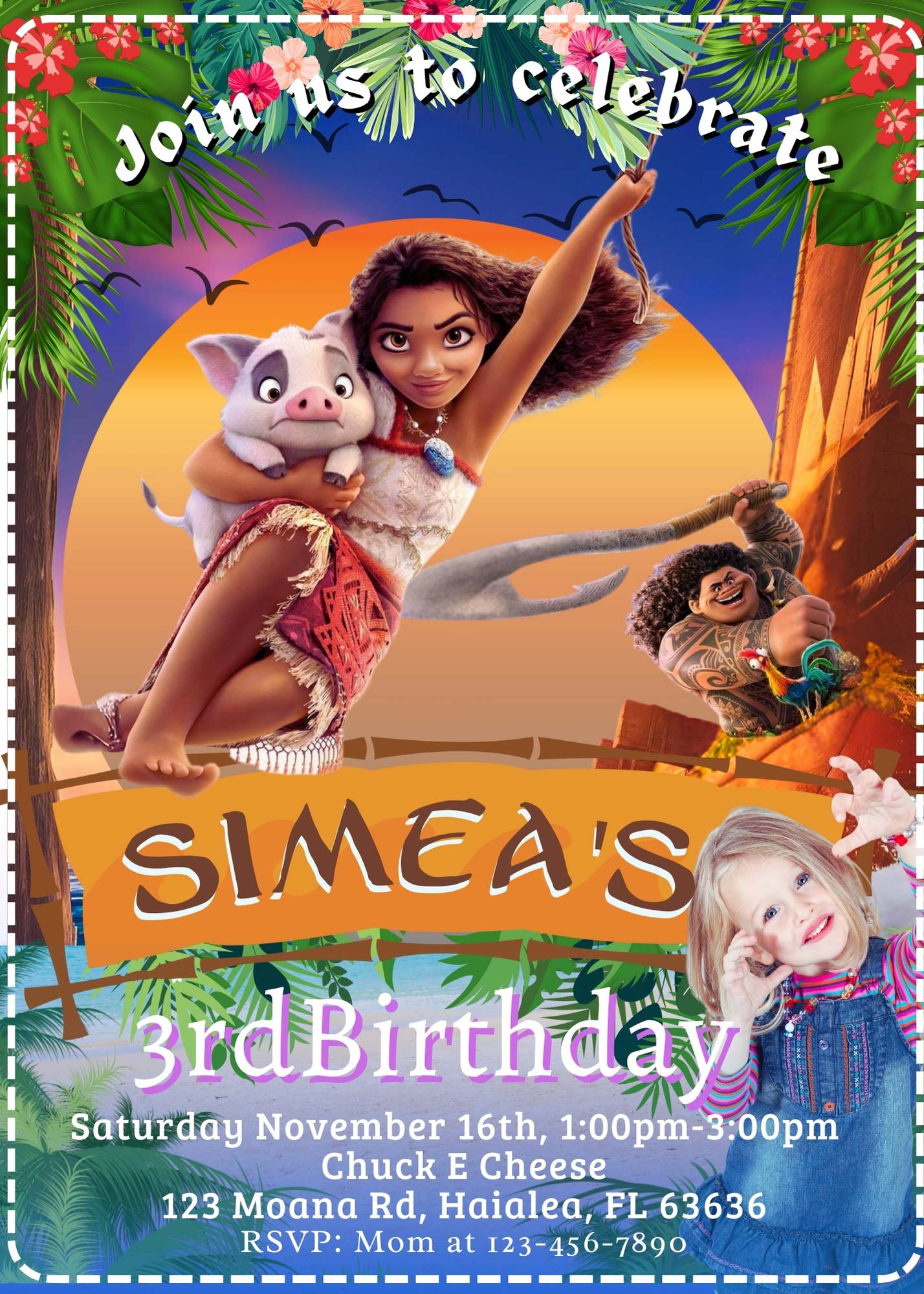 Sail into adventure with our Moana 2 Birthday Invite Design! Perfect for fans of the bold and courageous Moana, this digital invitation brings the spirit of the ocean right to your child’s special day.