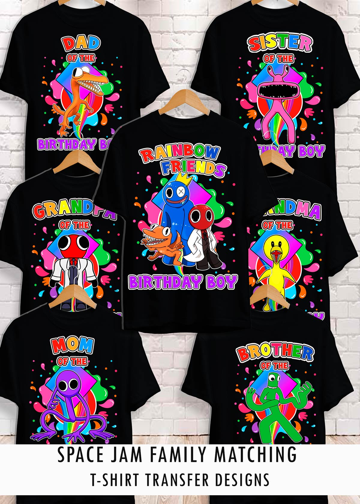 This product is for 7 Rainbow friends Birthday Shirt Transfer family set designs, printable and digital files that will be emailed after your purchase.