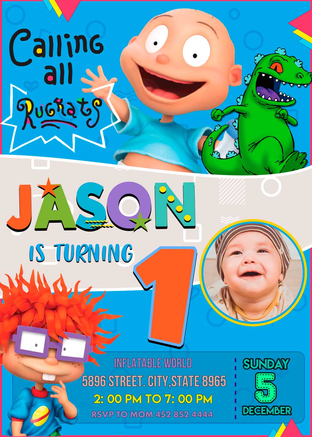Delight your little Boy with this Fantastic Rugrats Birthday Invitation.