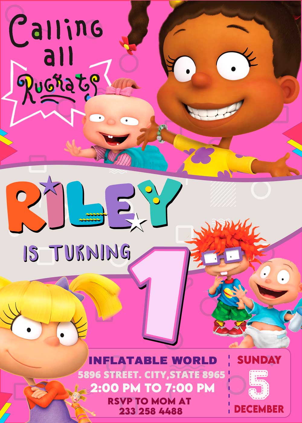 Delight your little Boy with this Fantastic  Rugrats Invitation Girl Birthday Version.