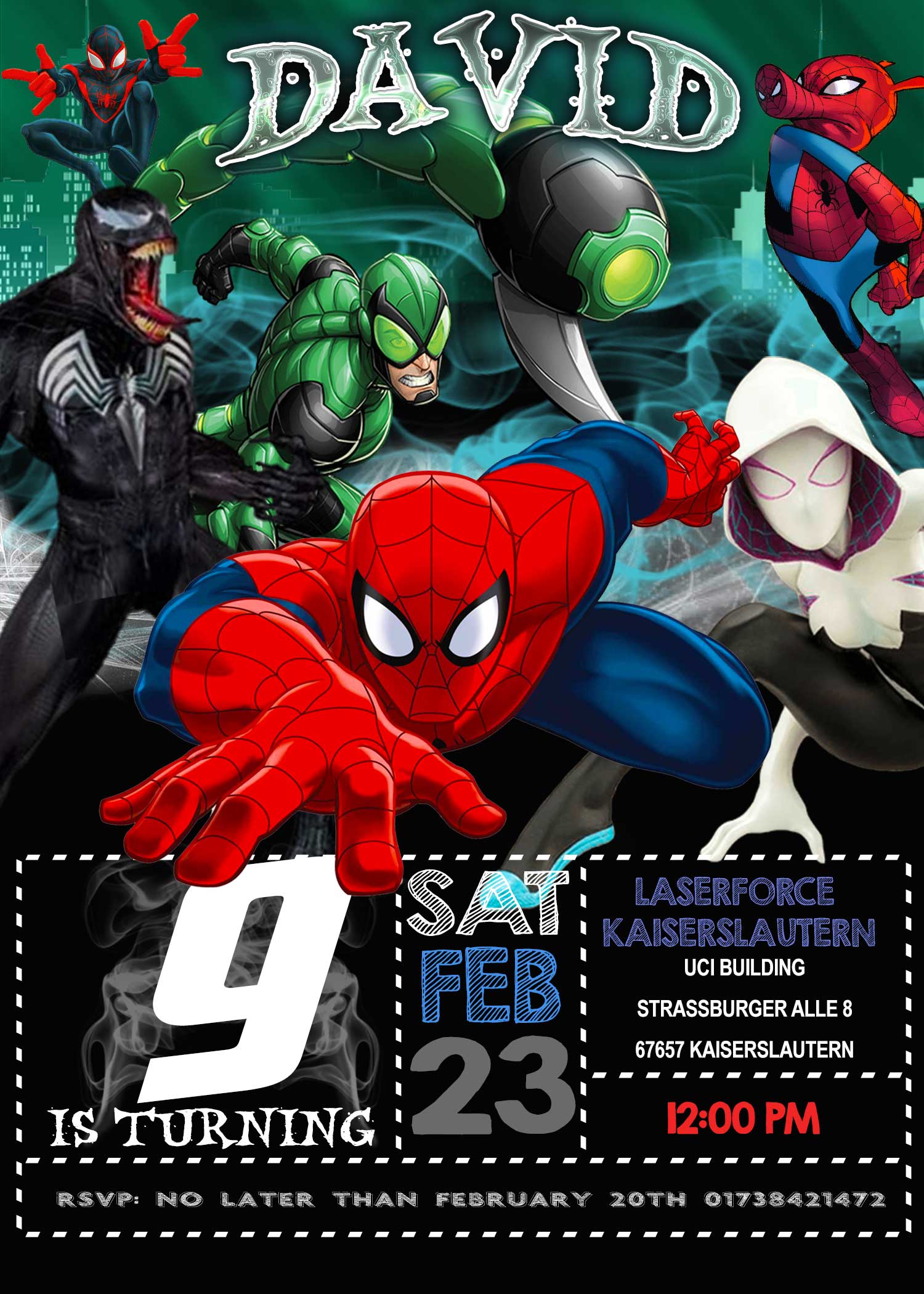 Spiderman & Friends Vs Villains Birthday Invitation.