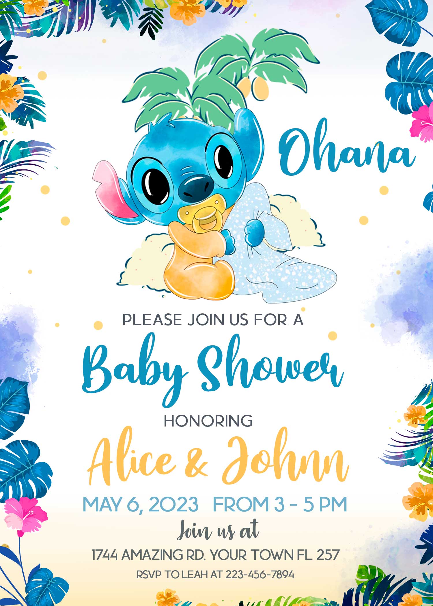 Delight your guests with an amazing baby shower party theme using these beautiful Stitch Baby Shower Invitation.