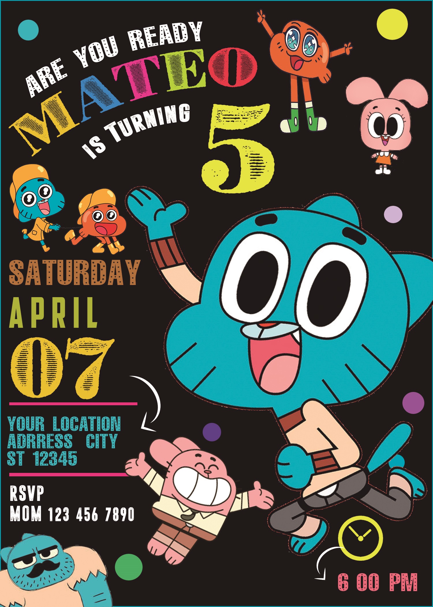 ✿ You’ll receive your high resolution The Amazing World of Gumball Birthday Invitation JPEG file to your email used for your purchase (within 24 hrs or less)