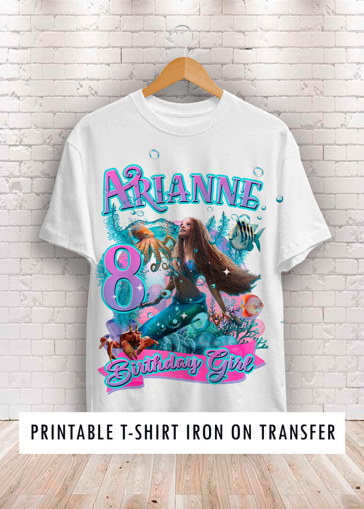 This is a digital, The Little Mermaid Birthday Shirt Printable Transfer. will be personalized by a professional designer after your purchase, using the info that you wrote at the buyers note when checking out.